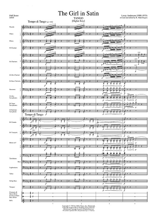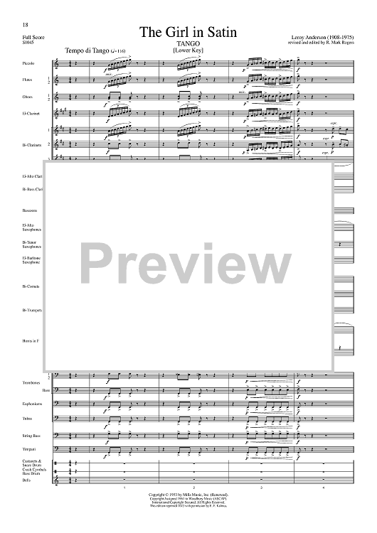 Digital Sheet Music for The Girl in Satin - Full Score by Leroy Anderson scored for Concert Band; id:502197
