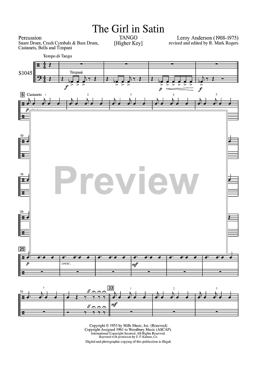 Digital Sheet Music for The Girl in Satin - Percussion by Leroy Anderson scored for Concert Band; id:502233