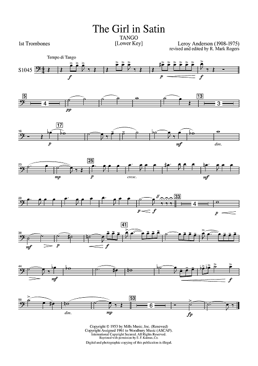 "The Girl in Satin - Trombone 1" Sheet Music by Leroy Anderson
