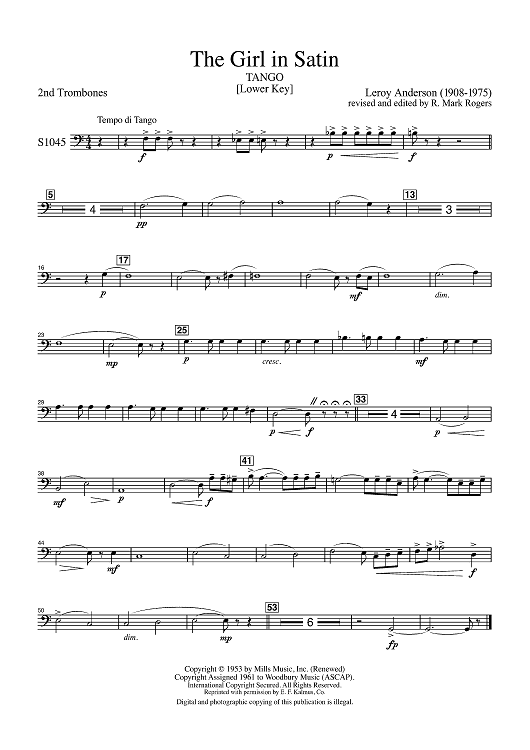 "The Girl in Satin - Trombone 2" Sheet Music by Leroy Anderson
