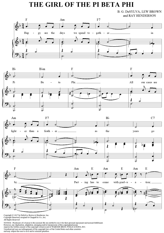 Digital Sheet Music for The Girl of the Pi Beta Phi by Ray Henderson, Lew Brown, Buddy DeSylva scored for Piano/Vocal/Chords; id:355348