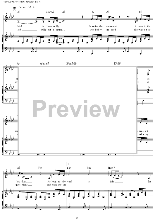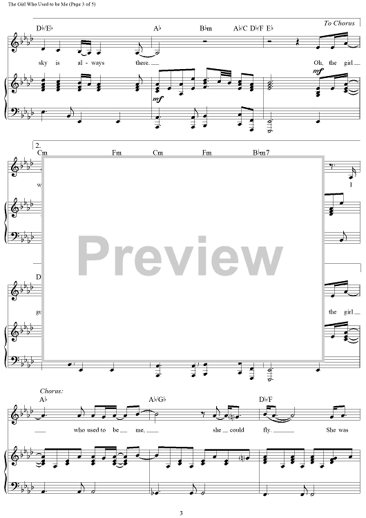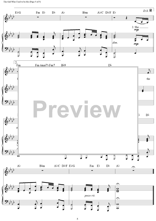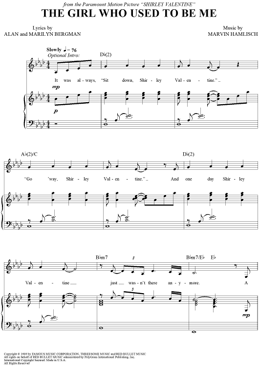 Digital Sheet Music for The Girl Who Used to Be Me by Marvin Hamlisch, Alan Bergman, Marilyn Bergman scored for Piano/Vocal/Chords; id:267359