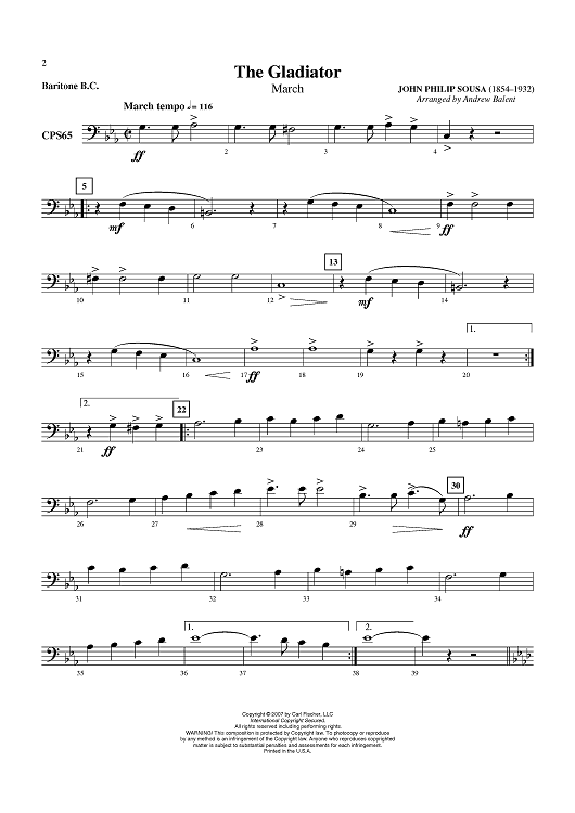 Digital Sheet Music for The Gladiator - Baritone by John Philip Sousa, Andrew Balent scored for Concert Band; id:407227