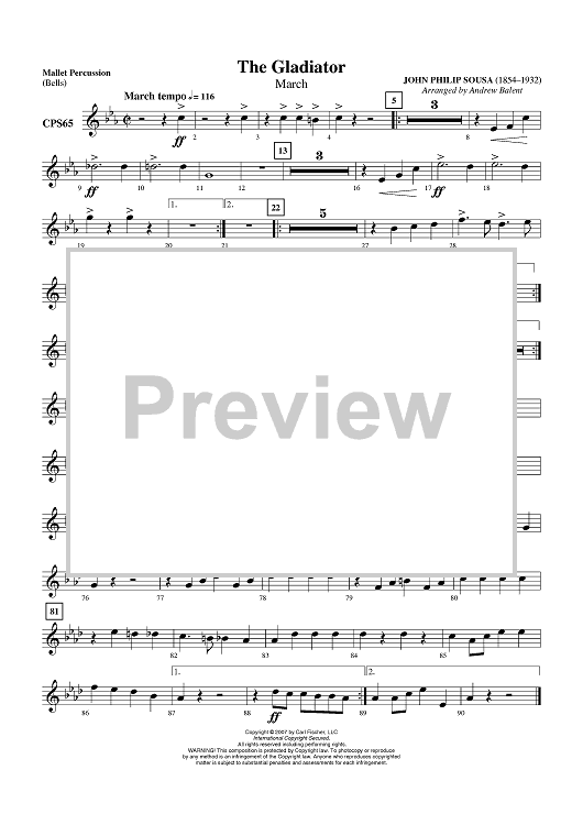 Digital Sheet Music for The Gladiator - Mallet Percussion by John Philip Sousa, Andrew Balent scored for Concert Band; id:407229