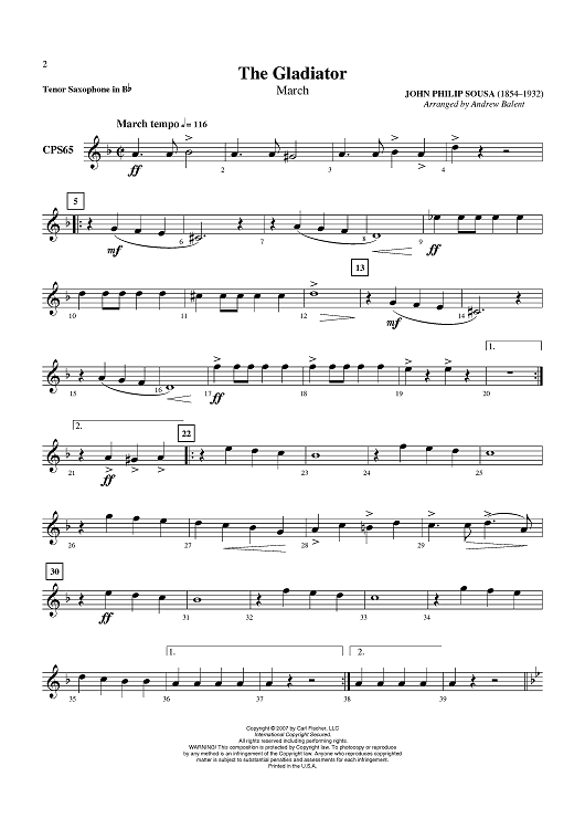"The Gladiator - Tenor Sax" Sheet Music by John Philip Sousa