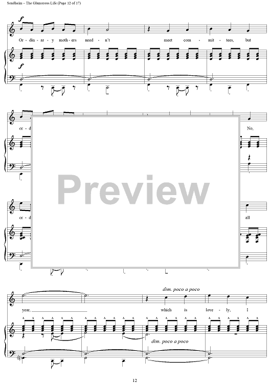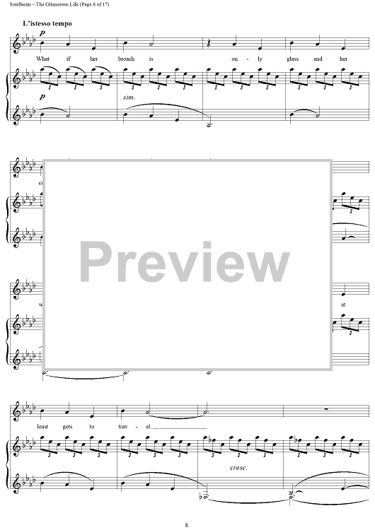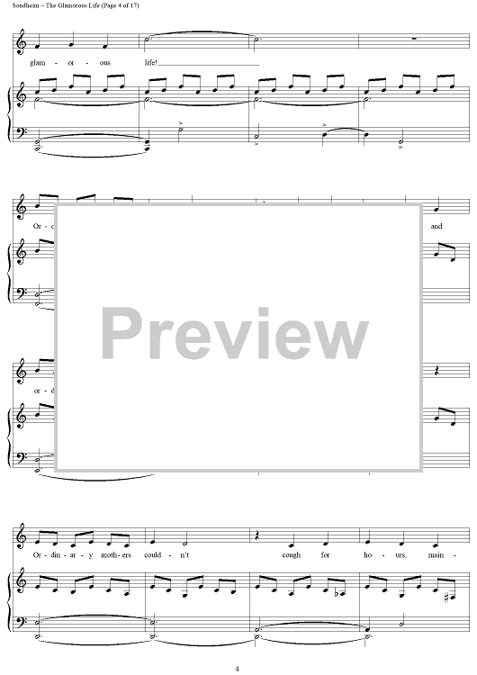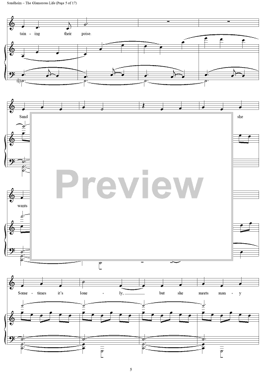 Digital Sheet Music for The Glamorous Life by Stephen Sondheim scored for Piano/Vocal; id:120395