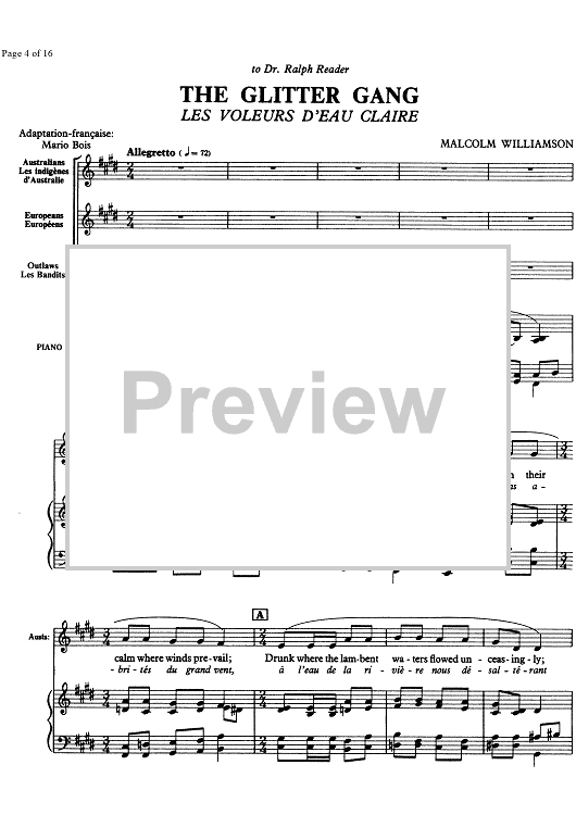 Digital Sheet Music for The Glitter Gang - Score by Malcolm Williamson scored for Children and Youth Choir/Piano; id:333552