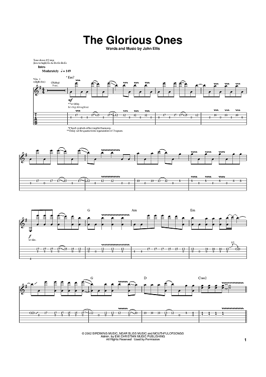 Digital Sheet Music for The Glorious Ones by John Ellis, Tree63 scored for Guitar Tab; id:372551