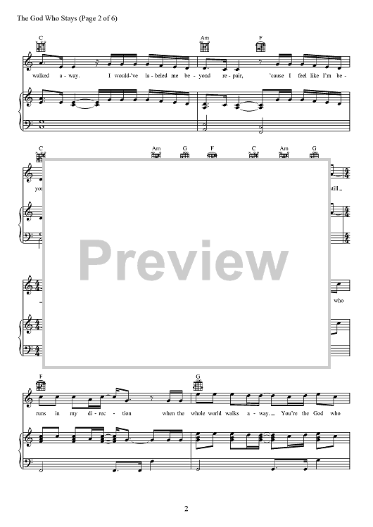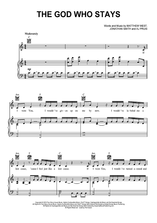 Digital Sheet Music for The God Who Stays by Lil Jon, Matthew West, A. J. Pruis scored for Piano/Vocal/Chords; id:467725