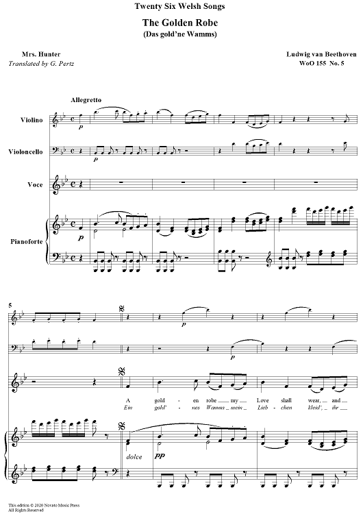 "The Golden Robe - from 26 Welsh Songs" Sheet Music by Ludwig van Beethoven
