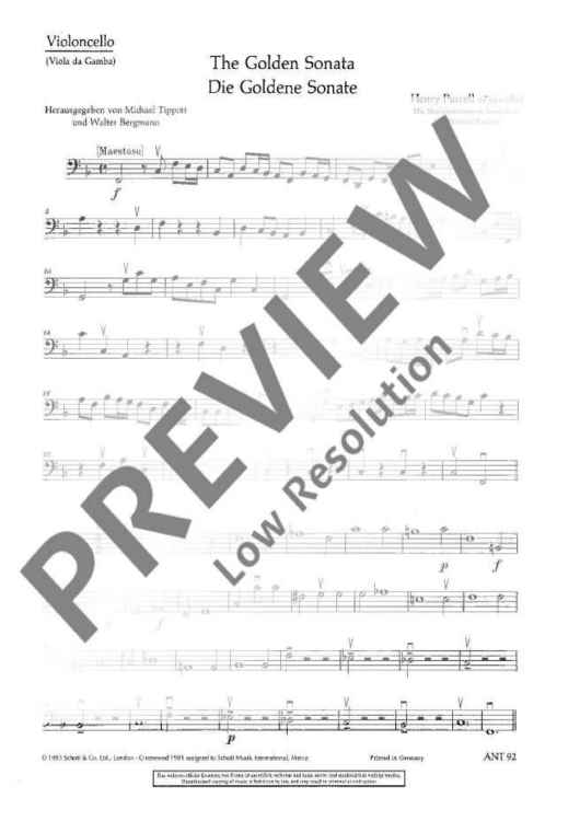 Digital Sheet Music for The Golden Sonata - Score and Parts by Henry Purcell scored for 2 Violins And Basso Continuo (harpsichord, Piano, Organ); Cello (viola Da Gamba) Ad Libitum; id:471090