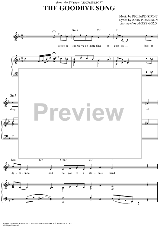 Digital Sheet Music for The Goodbye Song by Marty Gold, Richard Stone, John P. McCann scored for Piano/Vocal/Chords; id:259198