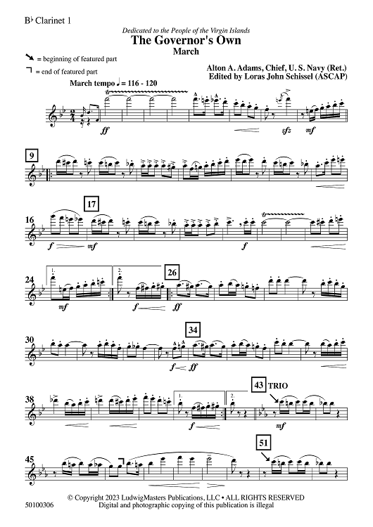 Digital Sheet Music for The Governor's Own - Bb Clarinet 1 by Loras John Schissel, Alton Adams scored for Concert Band; id:507997