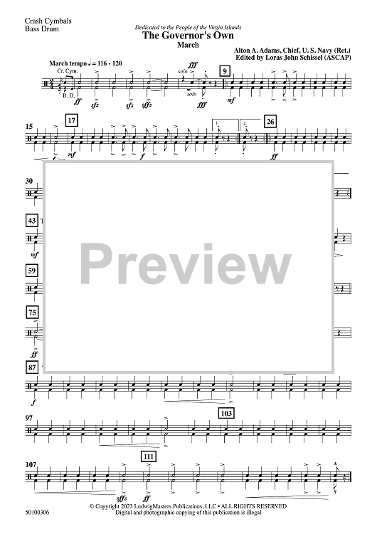 Digital Sheet Music for The Governor's Own - Crash Cymbals / Bass Drum by Loras John Schissel, Alton Adams scored for Concert Band; id:508020
