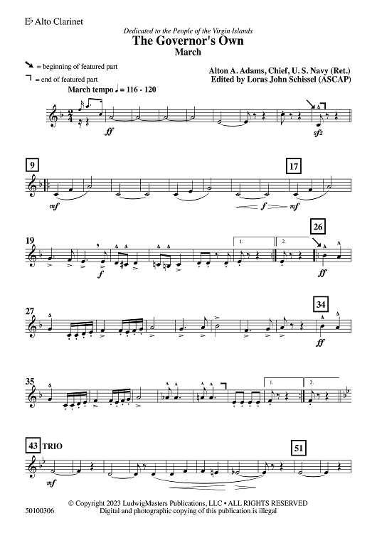 Digital Sheet Music for The Governor's Own - Eb Alto Clarinet by Loras John Schissel, Alton Adams scored for Concert Band; id:508000
