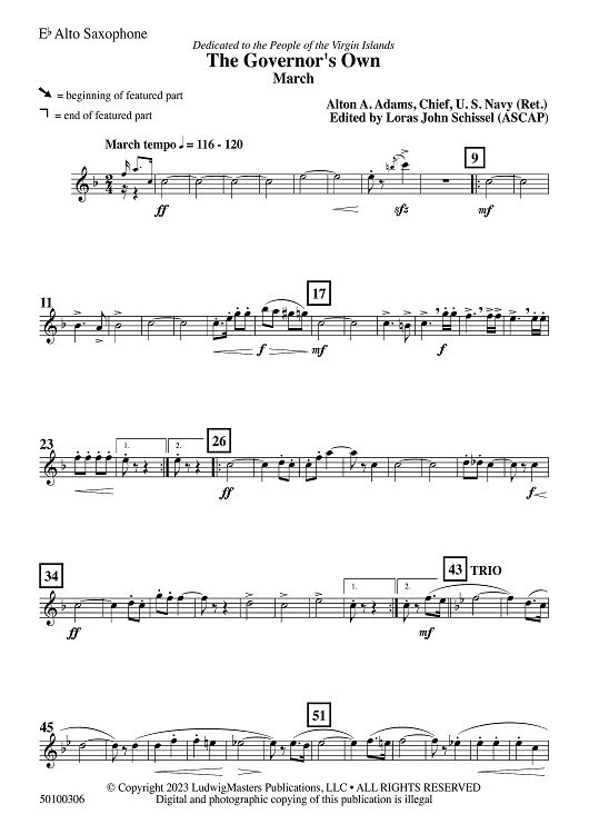 Digital Sheet Music for The Governor's Own - Eb Alto Saxophone by Loras John Schissel, Alton Adams scored for Concert Band; id:508003