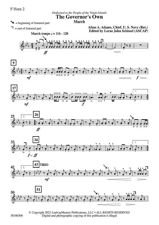 Digital Sheet Music for The Governor's Own - F Horn 2 by Loras John Schissel, Alton Adams scored for Concert Band; id:508010