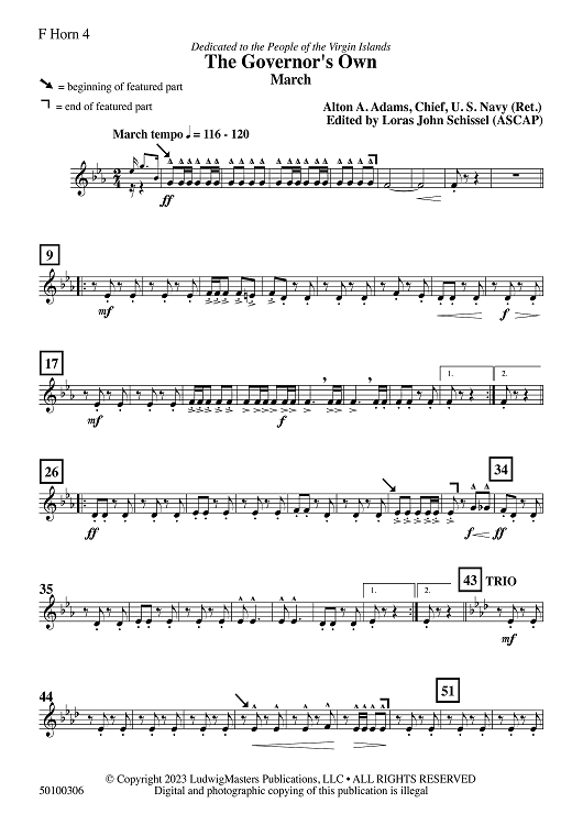 Digital Sheet Music for The Governor's Own - F Horn 4 by Loras John Schissel, Alton Adams scored for Concert Band; id:508012
