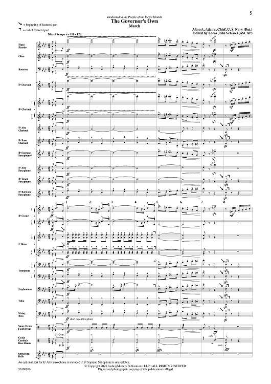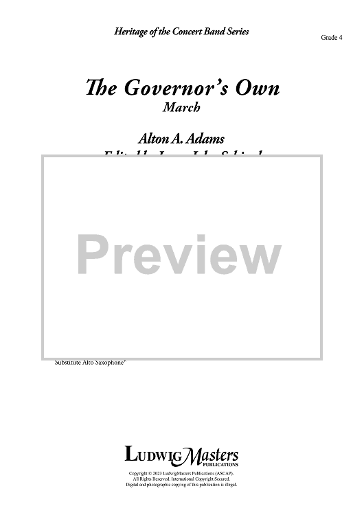 Digital Sheet Music for The Governor's Own - Full Score by Loras John Schissel, Alton Adams scored for Concert Band; id:507992