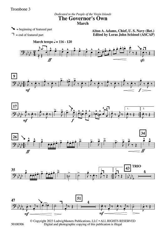 Digital Sheet Music for The Governor's Own - Trombone 3 by Loras John Schissel, Alton Adams scored for Concert Band; id:508015