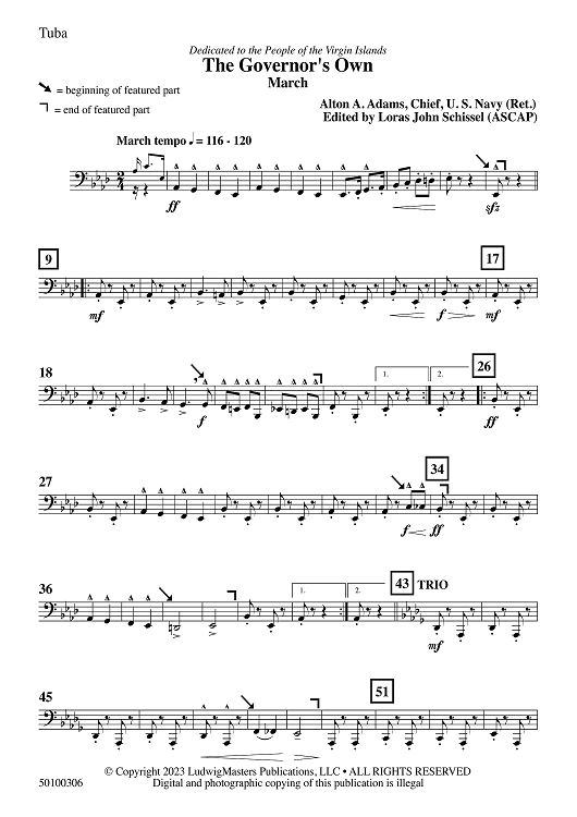 Digital Sheet Music for The Governor's Own - Tuba by Loras John Schissel, Alton Adams scored for Concert Band; id:508017