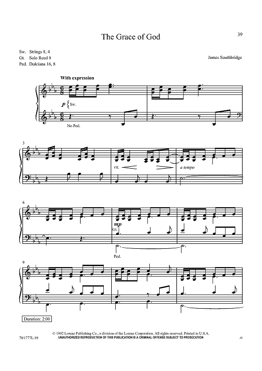 Digital Sheet Music for The Grace of God by James Southbridge scored for Organ Solo; id:437686