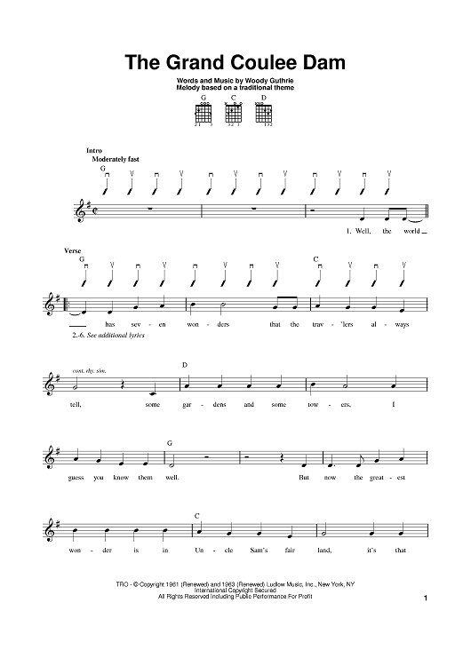"The Grand Coulee Dam" Sheet Music by Woody Guthrie