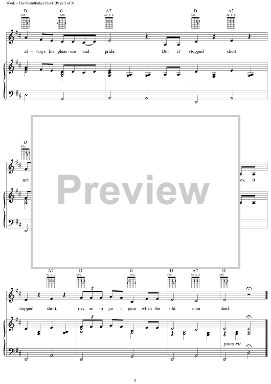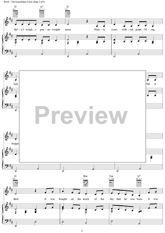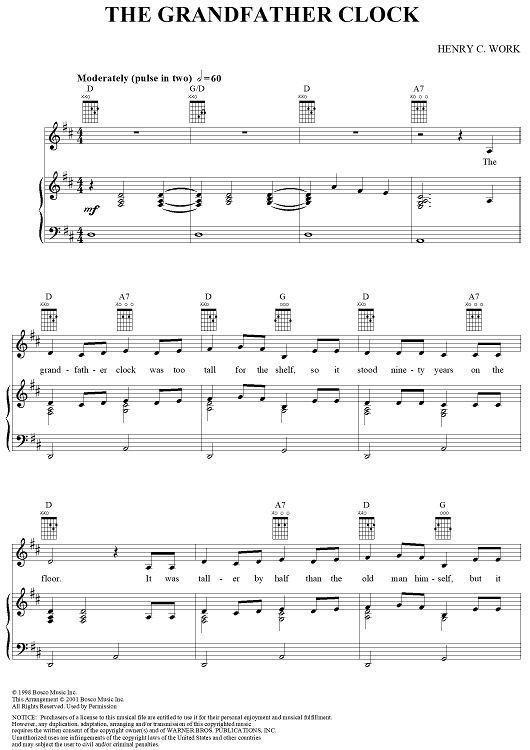 Digital Sheet Music for The Grandfather Clock by Henry C. Work scored for Piano/Vocal/Chords; id:289044