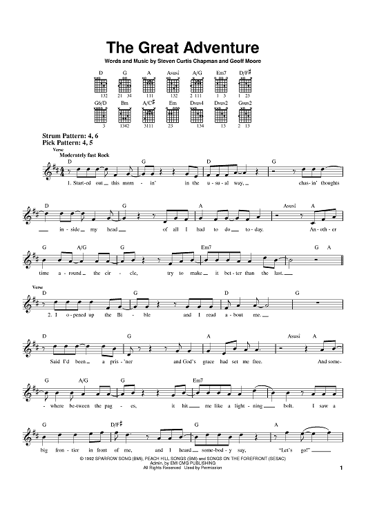 Digital Sheet Music for The Great Adventure by Geoff Moore, Steven Curtis Chapman scored for Easy Guitar; id:398269