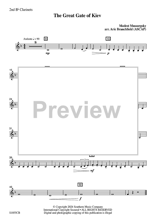 Digital Sheet Music for The Great Gate of Kiev - 2nd Bb Clarinets by Modest Mussorgsky, Aric Branchfield scored for Concert Band; id:506387