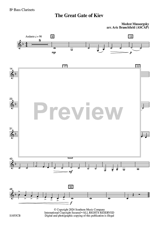 Digital Sheet Music for The Great Gate of Kiev - Bb Bass Clarinets by Modest Mussorgsky, Aric Branchfield scored for Concert Band; id:506388