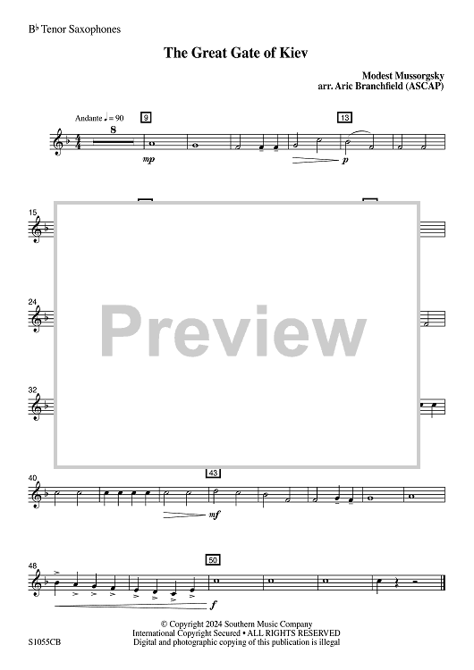 Digital Sheet Music for The Great Gate of Kiev - Bb Tenor Saxophones by Modest Mussorgsky, Aric Branchfield scored for Concert Band; id:506392