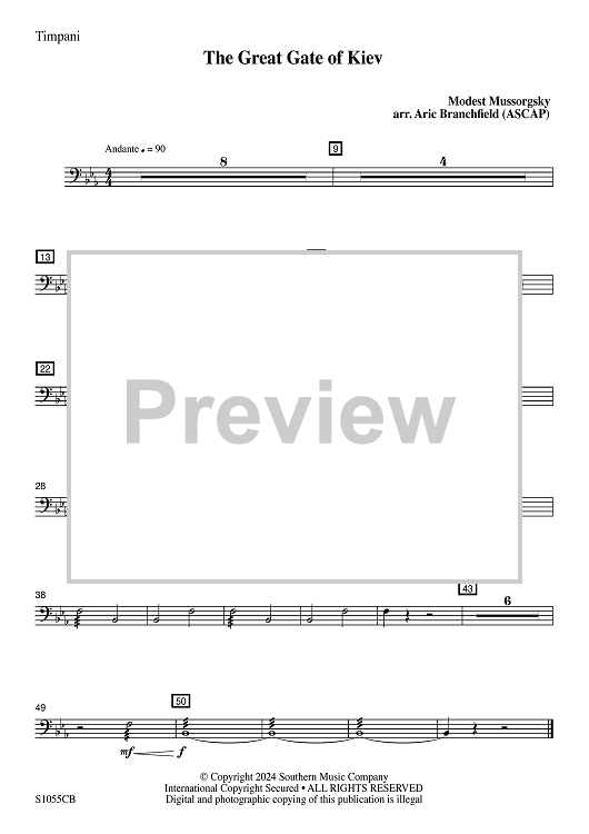 Digital Sheet Music for The Great Gate of Kiev - Timpani by Modest Mussorgsky, Aric Branchfield scored for Concert Band; id:506400