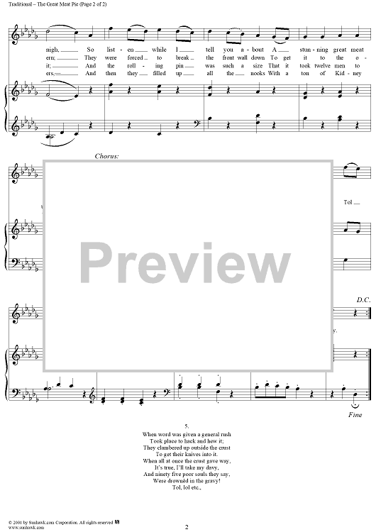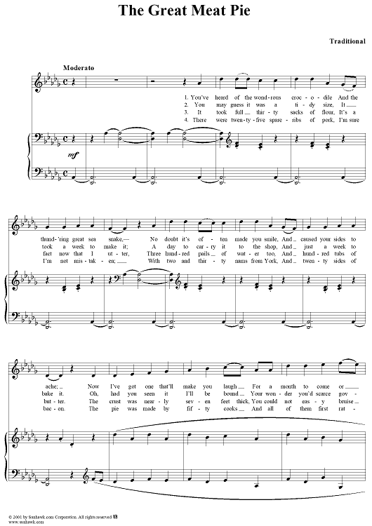 Digital Sheet Music for The Great Meat Pie by Traditional scored for Piano/Vocal; id:258934