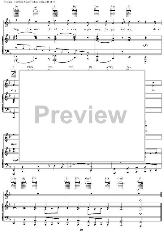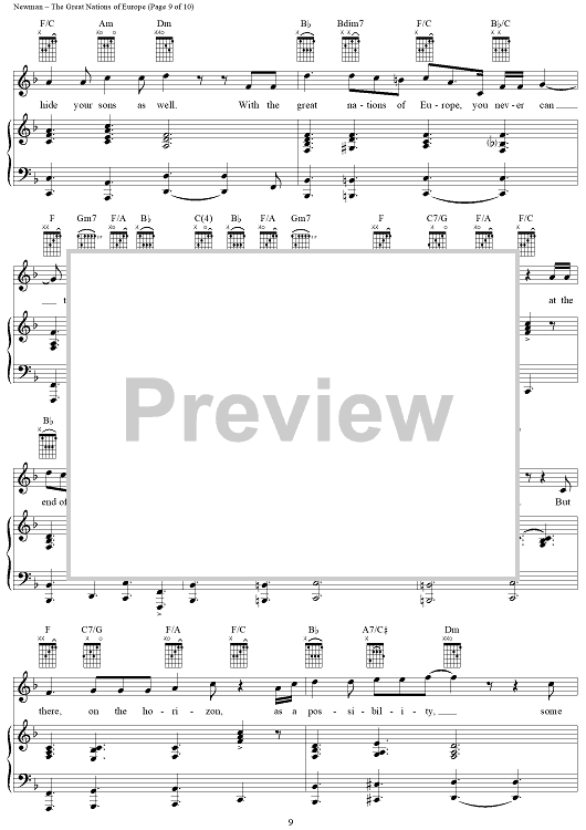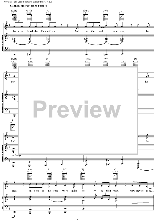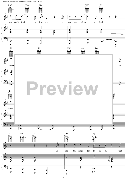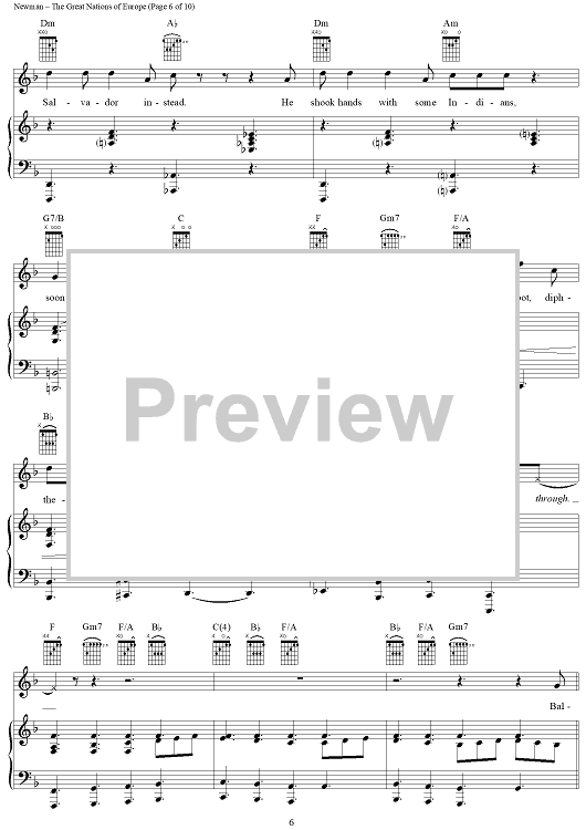 Digital Sheet Music for The Great Nations of Europe by Randy Newman scored for Piano/Vocal/Chords; id:253497