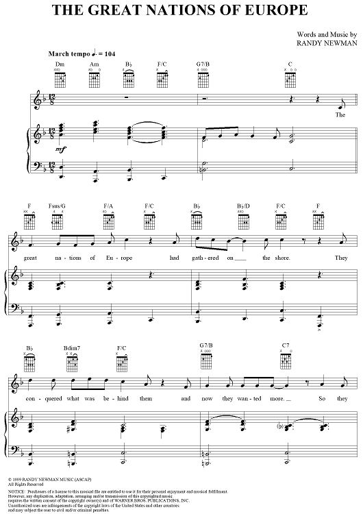 "The Great Nations of Europe" Sheet Music by Randy Newman