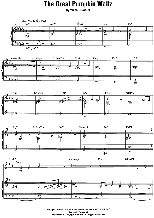 "The Great Pumpkin Waltz" Sheet Music by Vince Guaraldi