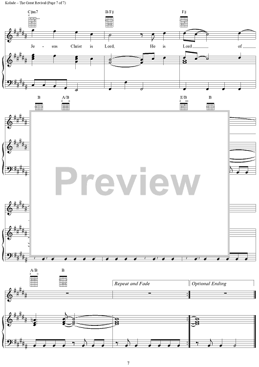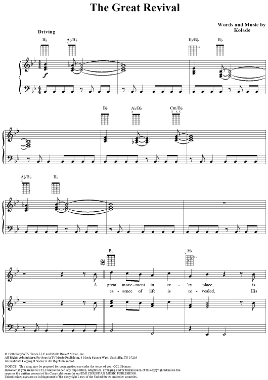 Digital Sheet Music for The Great Revival by Steve Green, Kolade scored for Piano/Vocal/Chords; id:119509