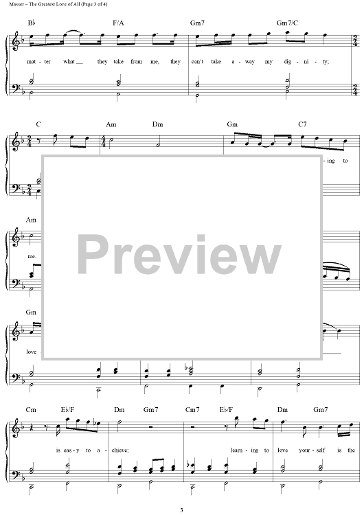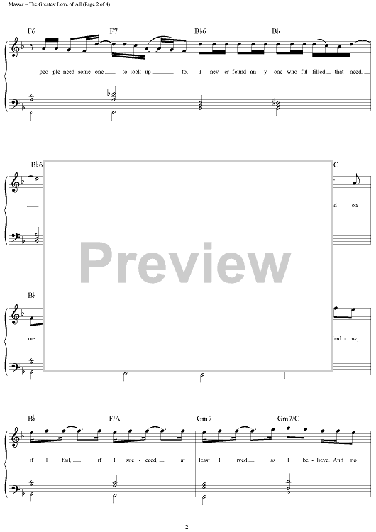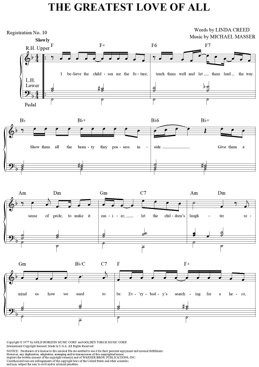 "The Greatest Love of All" Sheet Music by Michael Masser