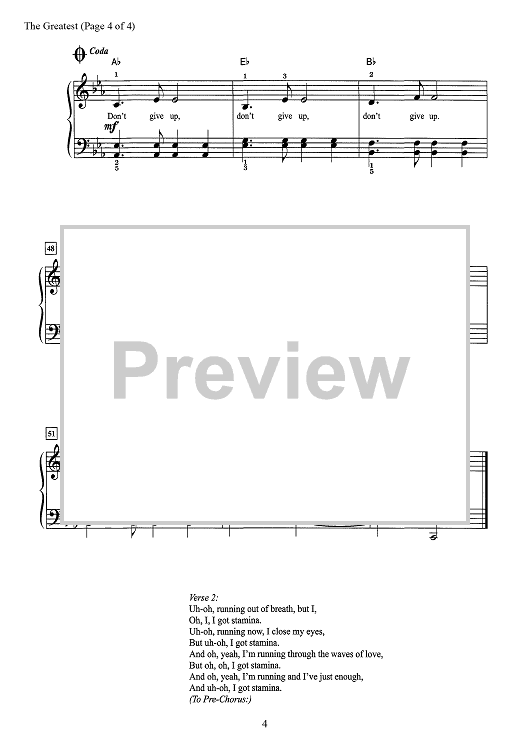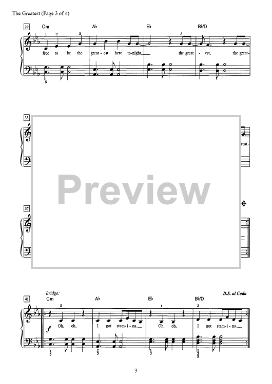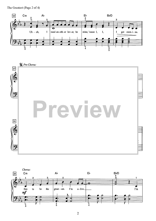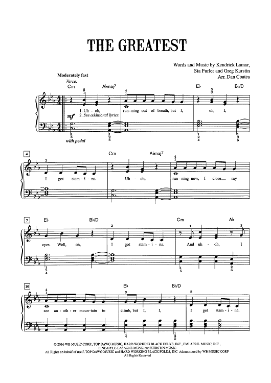 Digital Sheet Music for The Greatest by Dan Coates, Greg Kurstin, Sia Furler, Sia scored for Easy Piano/Vocal/Chords; id:466681