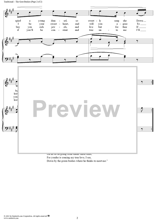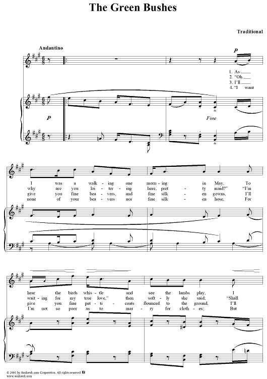 Digital Sheet Music for The Green Bushes by Traditional scored for Piano/Vocal; id:258936