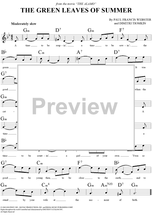 Digital Sheet Music for The Green Leaves of Summer by Dimitri Tiomkin, Paul Francis Webster scored for Lead Sheet; id:120854
