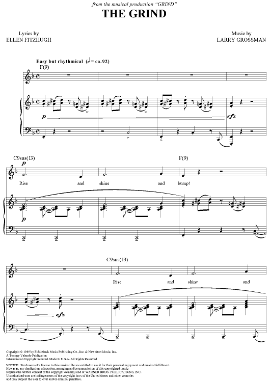 Digital Sheet Music for The Grind by Larry Grossman, Ellen Fitzhugh scored for Piano/Vocal/Chords; id:314291