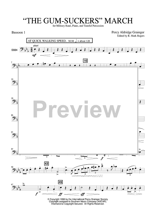 Digital Sheet Music for The Gum Suckers March - Bassoon 1 by Percy Grainger, R. Mark Rogers scored for Concert Band; id:503504