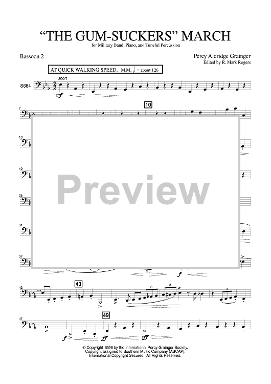 Digital Sheet Music for The Gum Suckers March - Bassoon 2 by Percy Grainger, R. Mark Rogers scored for Concert Band; id:503505