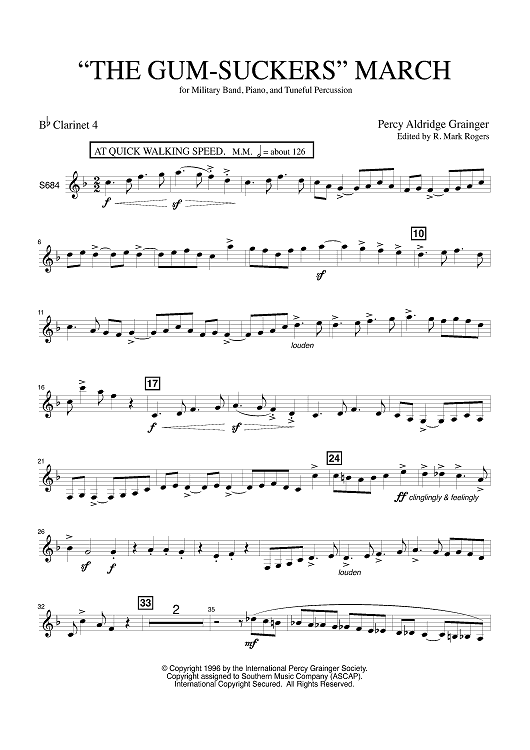 Digital Sheet Music for The Gum Suckers March - Bb Clarinet 4 by Percy Grainger, R. Mark Rogers scored for Concert Band; id:503499