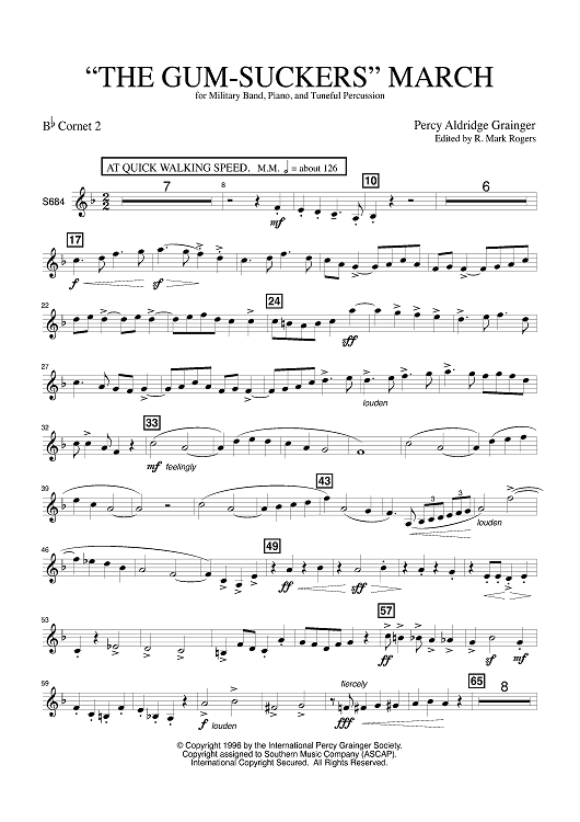 Digital Sheet Music for The Gum Suckers March - Bb Cornet 2 by Percy Grainger, R. Mark Rogers scored for Concert Band; id:503515