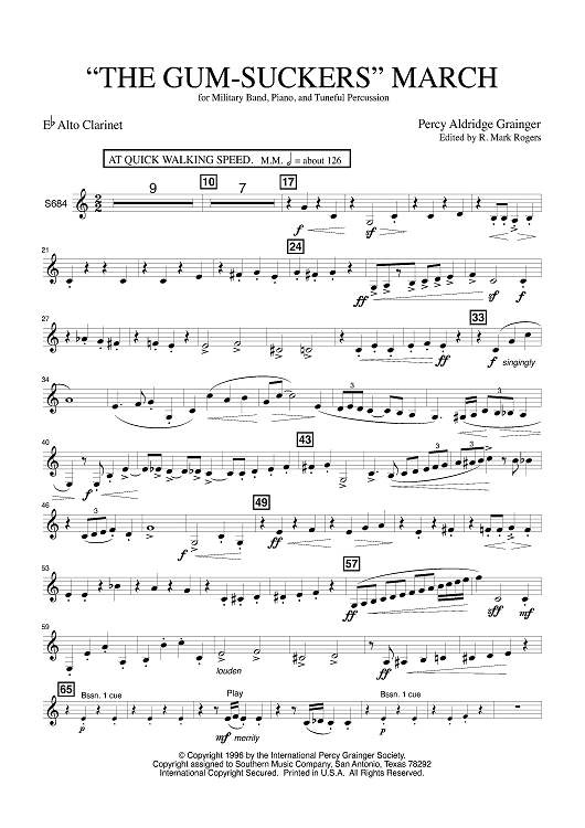 Digital Sheet Music for The Gum Suckers March - Eb Alto Clarinet by Percy Grainger, R. Mark Rogers scored for Concert Band; id:503500