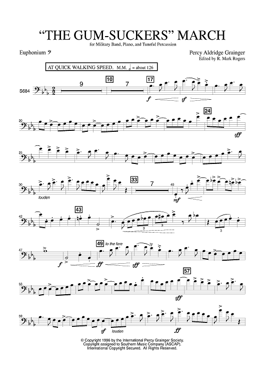 Digital Sheet Music for The Gum Suckers March - Euphonium BC by Percy Grainger, R. Mark Rogers scored for Concert Band; id:503526