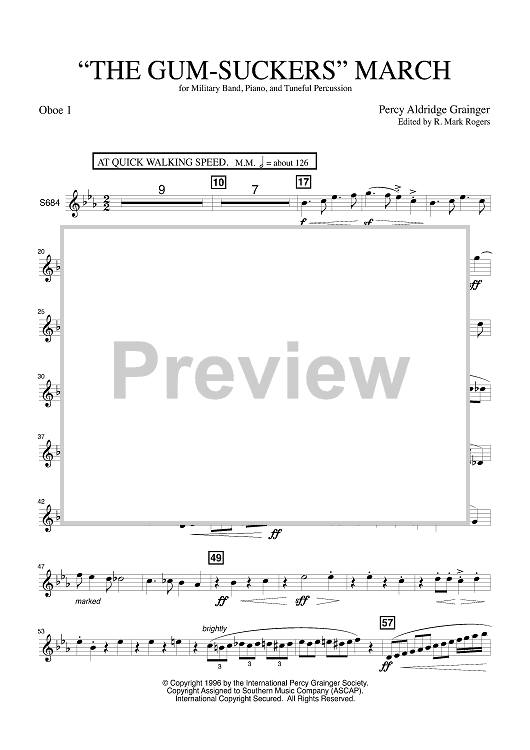 Digital Sheet Music for The Gum Suckers March - Oboe 1 by Percy Grainger, R. Mark Rogers scored for Concert Band; id:503492